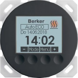 Berker Q1 Regulator temp. podłogi ze stykiem rozwiernym, elementem centralnym, łącznikiem i 2 diodami LED biały aksamit 20346089