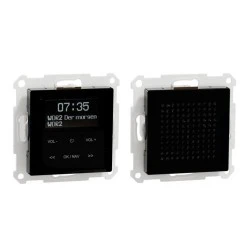 Radio DAB+ z Bluetooth Zestaw odbiornika radiowego DAB+, FM z funkcją głośnika Bluetooth V4.1 umożliwiającą odbiór muzyki odtwarzanej np. z telefonu lub tabletu. Sterowanie odbiornikiem odbywa się za pomocą panelu dotykowego. Pamięć odbiornika pozwala na zaprogramowanie 20 stacji DAB+ i 20 stacji FM. Możliwość ustawienia 2 alarmów i automatycznego wyłączenia, a także rozszerzenia o dodatkowy głośnik MTN4381-0303, kolor czarny. Do montażu w ramkach serii Sedna Design & Elements oraz Merten. Cyfrowy i analogowy - dwa światy, które łączą nowe urządzenie radiowe z Bluetooth z serii Merten. Kompaktowe i udane wizualnie urządzenie, w konstrukcji przełączników i gniazdek Merten Systém-M oferuje najnowszy odbiór radia cyfrowego z DAB + (Digital Audio Broadcasting) i nadal odbiera klasyczną analogową częstotliwość FM. Użytkownicy mogą również podłączyć smartfon, tablet lub inne źródło dźwięku przez Bluetooth i bezprzewodowo odtwarzać własną muzykę. Po sparowaniu w module radiowym zapisanych jest do ośmiu urządzeń Bluetooth, a połączenie jest nawiązywane automatycznie. Ponadto radio posiada szereg przydatnych funkcji dodatkowych, takich jak budzik, funkcja drzemki, wyłącznik czasowy czy lista ulubionych stacji, które można łatwo ustawić za pomocą ekranu dotykowego.Uwaga: produkty Sedna Design & Elements nie są kompatybilne z serią Sedna!