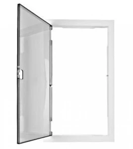 Przezroczyste drzwiczki, do obudów naściennych 3-rzędowych BK0850012A (ściana murowana) i BK0850512A (ściana g/k), w komplecie zaciski śrubowe, ABS, bezhalogenowe, klasa II, kolor ramki RAL9003