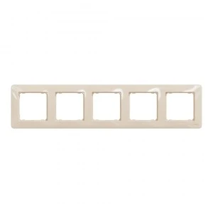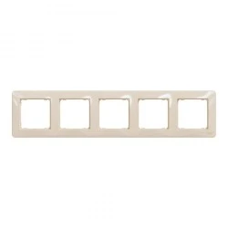 Sedna Design Ramka 5-krotna, beżowa, to osprzęt linii Sedna Design serii Sedna Design & Elements marki Schneider Electric. Ramka 5-krotna ma lśniące wykończenie powierzchni w kolorze beżowym i posiada następujące wymiary: szerokość 85 mm, wysokość 370 mm, głębokość 10 m m. Ramka charakteryzuje się stopniem ochrony IP20. Do produkcji ramki wykorzystano tworzywo termoplastyczne o zwiększonej odporności na promieniowanie UV. Produkt jest montowany natynkowo. Uwaga: produkty Sedna Design & Elements nie są kompatybilne z serią Sedna!