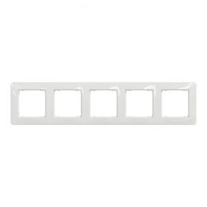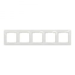 Sedna Design Ramka 5-krotna, biała, to osprzęt linii Sedna Design serii Sedna Design & Elements marki Schneider Electric. Ramka 5-krotna ma lśniące wykończenie powierzchni w kolorze białym i posiada następujące wymiary: szerokość 85 mm, wysokość 370 mm, głębokość 10 mm. Ramka charakteryzuje się stopniem ochrony IP20. Do produkcji ramki wykorzystano tworzywo termoplastyczne o zwiększonej odporności na promieniowanie UV. Produkt jest montowany natynkowo. Uwaga: produkty Sedna Design & Elements nie są kompatybilne z serią Sedna!