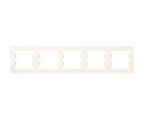 Ramka pięciokrotna pozioma w kolorze kremowym, serii Asfora, marki Schneider Electric, o numerze katalogowym EPH5800523. Ramka pojedyncza wykonana jest z materiału o zwiększonej odporności na UV dzięki czemu nie odbarwia się pod wpływem promieni słonecznych. Elastyczna ramka, dobrze przylegająca do ściany, również w przypadku wystającej puszki (nie zlicowanej z płaszczyzną ściany). Asfora to pełna gama wysokiej jakości łączników i gniazd o eleganckim kształcie oraz szerokiej funkcjonalności. Dostepna jest w 6 kolorach: biały, kremowy, aluminium, stal, brąz oraz antracyt, co pozwala stworzyć 36 kombinacji kolorystycznych. Prosta forma, szeroki asortyment oraz szybka i łatwa instalacja to zalety serii Asfora.