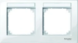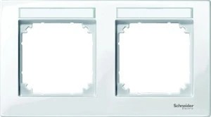 Ramka M-Plan, podwójna, z polem opisowym, do montażu poziomego, B.P, P.. rodzina produktów: Merten M-Plan - nazwa serii: M-Plan - typ produktu: ramka ozdobna - dodatkowa informacja: z powierzchnią etykiety - liczba zespołów: 2 zespoły - kod koloru: RAL 9010. Zalety: Nieograniczone możliwości., System M serii Merten jest międzynarodowym programem, w którego ofercie znajdują się wszystkie niezbędne typy łączników i gniazd.. Szeroki zakres typów wykończenia, kolorów, wariantów serii zapewniających pełną modułowość., Oferując ponad 150 funkcji, System Merten oferuje rozwiązania związane ze sterowaniem oświetleniem, gniazdami i łącznikami, VDI, sygnalizacją, elektronicznym sterowaniem oświetleniem ze ściemniaczami i czujkami ruchu, sterowaniem żaluzjami i roletami, sterowaniem temperaturą oraz produkty dedykowane dla szpitali i hoteli., System M linii Merten zawiera dodatkowo unikalną i znakomitą ofertę dla systemów KNX, z wysokiej jakości przyciskami, wyświetlaczami oraz czujkami ruchu i obecności., W przypadku odnawiania lub renowacji pomieszczeń, System M ma do zaoferowania najnowszą technologię, system sterowania radiowego, w pełni zgodny z estetyką poszczególnych programów Merten osprzętu elektroinstalacyjnego., Do wszystkich rodzajów instalacji.. Zastosowanie: Rozwiązania Systemu M przygotowane są do wszelkich możliwych rodzajów zastosowań, zarówno w budownictwie mieszkaniowym, jak i usługowym, np. W hotelach, biurach, szkołach....