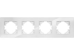 Ramka poczwórna z linii Acrylic Shine serii Modern-Q wykonana z białego akrylu o gładkiej, błyszczącej powierzchni. Umożliwia estetyczny montaż czterech mechanizmów obok siebie, zachowując spójność wizualną z pozostałymi elementami serii Modern-Q. Błyszczące wykończenie podkreśla nowoczesny charakter instalacji elektrycznej.
