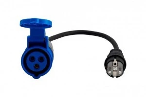 Przejścówka adapter redukcja z jednej strony gumowana wtyczka w polskim standardzie 2P+Z wtyczke można podłączyć do gniazd 230V schuko i uni-schuko na drugim końcu znajduje się gniazdo CEE 2P+Z 16A popularne na kempingach, polach namiotowych itp.