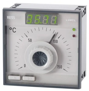 RE55 to regulator z nastawą analogową i cyfrowym pomiarem wielkości mierzonej. Współpracuje bezpośrednio z czujnikami temperatury typu rezystancyjnego.