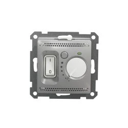 Regulator do ogrzewania podłogowego, srebrne aluminium, to osprzęt serii Sedna Design & Elements marki Schneider Electric. Regulator do ogrzewania podłogowego ma malowane wykończenie powierzchni w kolorze srebrnego aluminium i posiada następujące wymiary: szerokość 71 m m, wysokość 71 mm, głębokość 47 mm, głębokość wystawania 17.7 mm. Długość izolacji zdejmowanej z kabla to 8 mm. Regulator charakteryzuje się stopniem ochrony IP20 i zakresem mocy wynoszącym 3600 W. Do produkcji regulatora wykorzystano tworzywo termoplastyczne o zwiększo nej odporności na promieniowanie UV. Produkt jest montowany podtynkowo i posiada zaciski bezgwintowe. Uwaga: produkty Sedna Design & Elements nie są kompatybilne z serią Sedna!