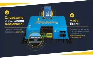 Regulatory ładowania MPPT wyposażone w funkcję śledzenia punktu mocy to nowoczesne urządzenia umożliwiające wydajniejsza pracę z tradycyjnymi panelami słonecznymi. Dzięki zaawansowanej elektronice regulator śledzi najbardziej optymalne parametry pracy i napięcie panela słonecznego, co pozwala na uzyskanie wyższej sprawności i wydajności niż tradycyjne PWM o 10% - 30%. Regulatory MPPT cechują się również wyższą wydajnością pracy podczas pochmurnych dni lub w półcieniu.Decydując się na wprowadzenie do naszej oferty regulatorów MPPT postawiliśmy na Holenderską firmę Victron Energy, oferującą najwyższą wydajność oraz optymalną cenę. Regulatory VE są cenione i chwalone na rynku fotowoltaicznym oraz deklasują wszystkie regulatory chińskiej konstrukcji. Regulator opcjonalnie można obsługiwać za pomocą telefonu. Należy jednak dokupić interfejs Blue Tooth Dongle