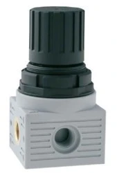 Regulator RS Pro Pneumatic 600 NL/min, 0 do 12 bar Regulator pneumatyczny RS Pro to kompaktowe i wytrzymałe urządzenie, które pozwala zmniejszyć ciśnienie powietrza doprowadzanego do układu i utrzymywać ciśnienie na wylocie z dokładnością, pomimo ewentualnych wahań. Regulator charakteryzuje się solidną i Durable, która jest odpowiednia do wielu zastosowań przemysłowych, zapewniając bardzo precyzyjną regulację ciśnienia powietrza niezależnie od środowiska. Regulatory RS Pro są dostępne z gwintem 1/4 lub 1/8-portowym i oferują przepływ 600 NL/min oraz regulację do 12 bar, zapewniając wydajną i efektywną konserwację ciśnienia powietrza. Charakterystyka i zalety Nadaje się do szerokiej gamy zastosowań przemysłowych Pionowe położenie montażowe Modułowość Precyzyjna i precyzyjna regulacja Wysoki przepływ zapewniający wysoką wydajność Solidna, a jednocześnie lekka konstrukcja Filtry koalescencyjne Bez silikonu Zastosowania Regulatory, zwane również regulatorami ciśnienia, są urządzeniami wykorzystywanymi do regulacji powietrza i utrzymywania stabilnego źródła ciśnienia dla szerokiej gamy urządzeń do sterowania procesami. Wysokie ciśnienie wpływa do regulatora przez wlot i do komory zaworów, gdzie regulowane pokrętło uruchamia sprężynę, powodując otwarcie zaworu. Powoduje to wzrost ciśnienia w tłoku, który powoduje zamknięcie zaworu do czasu utrzymania i regulacji wymaganej wartości ciśnienia. Regulatory są stosowane w szerokiej gamie urządzeń i urządzeń pneumatycznych i są powszechnie stosowane w takich obszarach, jak: Automatyka przemysłowa Medycyna Stomatologiczne Systemy wentylacji, klimatyzacji i ogrzewania Standardy REACH, ROHS, PED 2014/68/UE. Często zadawane pytania Czy zawiera on manometr? Nie ten regulator nie zawiera manometru. Jakie położenie można zamontować? Sterowniki RS Pro zostały zaprojektowane do instalacji w pionie.