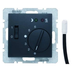 Berker Q1 Regulator temp. podłogi ze stykiem rozwiernym, elementem centralnym, łącznikiem i 2 diodami LED biały aksamit 20346089