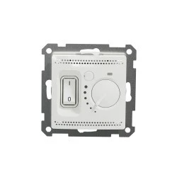 Regulator temperatury 2-biegunowy (16A), biały, to osprzęt serii Sedna Design & Elements marki Schneider Electric. Regulator temperatury ma lśniące wykończenie powierzchni w kolorze białym i posiada następujące wymiary: szerokość 71 mm, wysokość 71 mm, głębokość 47 mm, głębokość wystawania 14.4 mm. Długość izolacji zdejmowanej z kabla to 8 mm. Regulator charakteryzuje się stopniem ochrony IP20 i zakresem mocy wynoszącym 3600 W. Do produkcji regulatora wykorzystano tworzywo termoplastyczne o zwiększonej odporności na promieniowanie UV. Produkt jest montowany podtynkowo i posiada zaciski bezgwintowe. Uwaga: produkty Sedna Design & Elements nie są kompatybilne z serią Sedna!