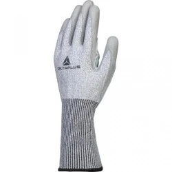 Rękawica z włókna wysokiej odporności DELTAnocut®. Powłoka z poliuretanu i dwoiny bydlęcej na stronie chwytnej i końcach palców. Ścieg 13.
