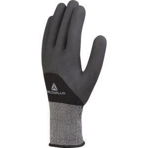Rękawica z poliestru Spandex. Powłoka nitrylowa na stronie chwytnej i końcach palców oraz do połowy strony grzbietowej. Kropki nitrylowe na stronie chwytnej. Ścieg 15.