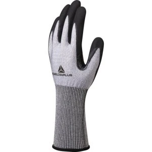 Rękawica z włókna wysokiej odporności SOFTnocut. Powłoka z pianki nitrylowej na stronie chwytnej i końcach palców. Wzmocnienie między kciukiem i palcem wskazującym. Mankiet 10 cm. Ścieg 15.