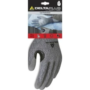 Rękawica z włókna wysokiej odporności SOFTnocut. Powłoka poliuretanowa na stronie chwytnej i końcach palców. Wzmocnienie między kciukiem i palcem wskazującym. Ścieg 13.