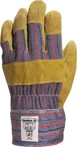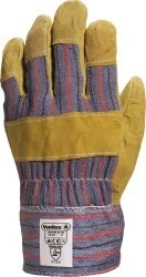 Rękawice wzmacniane typu doker to model dostępny w ofercie katalogowej firmy Delta Plus - francuskiego producenta odzieży i dodatków BHP. Rękawice mają wygodny krój amerykański, który nie krępuje ruchów i komfortowo leżą na dłoniach. Strona chwytna oraz czubki palców zostały wykonane z dwoiny bydlęcej o grubości od 0,9 do 1,1 mm. Model ten posiada także wzmocnienia w okolicach knykciów i tętnicy. Zapewnia to większe bezpieczeństwo i ochronę tych części dłoni, które najbardziej narażone są na przetarcia i skaleczenia. Część grzbietowa i wnętrze rękawicy zostały uszyte z mocnego bawełnianego drelichu o gramaturze minimum 150 g/m?. Rękawica posiada przeszycia z wypustkami, mające za zadanie chronić szwy na kciuku i chwytnej stronie dłoni. Model ten charakteryzuje się wysoką odpornością na ścieranie i uszkodzenia mechaniczne. Otrzymał 3 punkty w czterostopniowej skali, dlatego doskonale sprawdzi się przede wszystkim w ochronie rąk magazynierów oraz pracowników transportu i spedycji. Najwyższej jakości materiały gwarantują wygodę i komfort użytkowania. Opisywane rękawice dostępne są w kolorze granatowo-beżowym, w rozmiarze 10.
