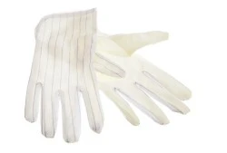 Rękawice z gładką Palm. Wytwarzany z statycznego rozpraszającego poliestru Palm i przód palców pokryte warstwą ochronną, zabezpieczającą użytkownika przed wycieczkami impregnowanymi rozpuszczalnikiem Gładka Palm z PCW zapewnia dodatkowy uchwyt Oddychający tył zapewnia wygodę operatora Idealny do wszystkich typów prac związanych z montażem światła