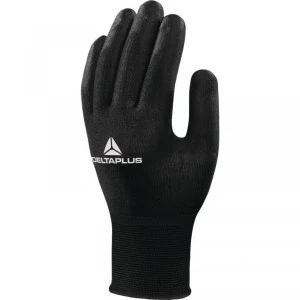 Rękawica z poliamidu 100%. Powłoka poliuretanowa na stronie chwytnej i końcach palców. Ścieg 15, kolor czarny rozmiar 7, zarkes rozmiarów: 6 DO 10