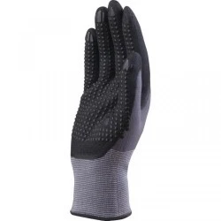 Rękawice dziane z poliamidu spandex (100) dłoń powlekana nitrylem kropki nitrylowe ścieg 15 kolor szaro‑czarny rozmiar 9 MAIN