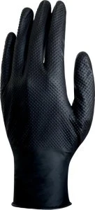 RĘKAWICE JEDNORAZOWE Z NITRYLU, NIEPUDROWANE, NITRYL O CHROPOWATEJ TEKSTURZE, OPAKOWANIE 50, CZARNE, ROZMIAR 6/7, V1600B5006