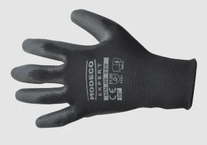 RĘKAWICE POLIESTROWE POWL. POLIURETANEM CZARNYM ROZMIAR 9 CE MN‑06‑220/9 /12par/