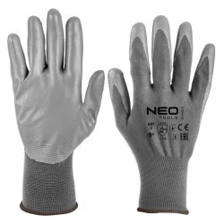 Rękawice dziane z poliestru (100), dłoń powlekana Poliuretanem, ścieg 13 szare rozmiar 9 VE702PG09