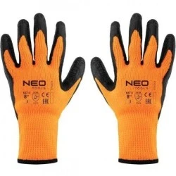 Rękawice robocze ocieplane, poliester powlekany lateksem, 2242X 97-612-8 NEO w rozmiarze 8 to rękawice odpowiadające za ochronę dłoni przed chłodem, zadrapaniami, brudem, odciskami oraz szkodliwymi i niesprzyjającymi warunkami w miejscu pracy. Są one wykonane z poliestru, wyposażone są w dodatkowe, lateksowe pokrycie, które zapobiega m.in. wyślizgiwaniu się przedmiotów z rąk.Rękawice charakteryzują się również odpowiednimi zabezpieczeniami.