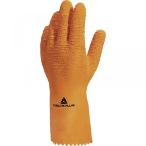 Rękawice z lateksu na wkładzie z dżerseju strona chwytna o szorstkiej strukturze dł. 30 cm kolor pomarańczowy rozmiar 9/10 MAIN