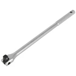 Rękojeść uchylna 1/2” to jedno z bardzo funkcjonalnych narzędzi ręcznych. Przydaje się do obsługi śrub i elementów gwintowanych, które ulokowane są w trudno dostępnych miejscach. Wykorzystywana jest przede wszystkim w mechanice samochodowej, pracach ślusarskich i budownictwie. Rękojeść uchylna 1/2” składa się z długiego na 380 mm ramienia z trzpieniem nasadkowym w konstrukcji uchylnej. Umożliwia to dokręcanie i odkręcanie śrub narzędziem ułożonym pod dowolnym kątem do osi gwintu. Narzędzie jest bardzo trwałe, a stal chromowo-wanadowa gwarantuje odporność na zarysowania i korozję. Trzpień roboczy umożliwia pewne mocowanie do rękojeści dowolnych nasadek półcalowych.
