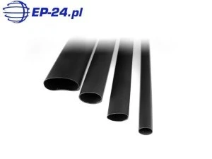 •długość 1000 mm; •kolor: czarny; •rura pogrubiona z klejem termotopliwym; •średnica wewnętrzna rury przed skurczeniem 18 mm, •średnica wewnętrzna ruru po całkowitym skurczeniu 6 mm, •temperatura obkurczania od +90st.C do +200st.C, •temperatura pracy od -55st.C do +105st.C, •zmiana długości po obkurczeniu: max 8%, •wytrzymałość dielektryczna: min 8kV/mm. Doskonale izolują i uszczelniają. Tworzą warstwę ochronną, antykorozyjną i dekoracyjną. Przyjmują kształt przedmiotu, na którym są obkurczane i zwiększają jego ochronę mechaniczną. Mają dużą siłę obkurczania oraz nieograniczony czas składowania. Są odporne na grzyby, pleśnie, czynniki agresywne, np. roztwory soli stosowanej zimą na drogach. Rury są odporne na promieniowanie UV.