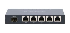 Ubiquiti EdgeRouter X, z serii EdgeMAX, to nowoczesny router o bardzo korzystnym stosunku wydajności do ceny. Posiada 5 portów PoE o prędkości gigabitowej oraz 1 port SFP. Maksymalna przepustowość danych dla połączeń Ethernet LAN wynosi aż 1000 Mbps.
