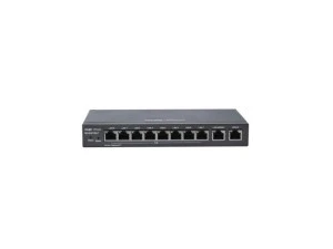 RG-EG210G-P to router o wysokiej wydajności z 10 portami, w tym 8 portów LAN z obsługą PoE, 1 portem WAN oraz 1 portem LAN/WAN SFP. Wszystkie porty są oparte na architekturze Gigabit Ethernet, co zapewnia routerowi imponującą przepustowość pomimo jego kompaktowych rozmiarów. Urządzenie oferuje zaawansowane funkcje, przy jednoczesnej łatwości w konfiguracji i obsłudze. Może obsłużyć jednocześnie do 200 użytkowników.