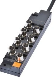 Okablowanie czujników i aktorów jest znacznie wygodniejsze dzięki naszej skrzynce dystrybucyjnej. Poszczególne urządzenia są połączone z rozdzielaczem za pomocą kabla M8 lub M12, który jest wstępnie zmontowany po obu stronach. Dzięki temu można znacznie zmniejszyć nakłady na układanie i podłączanie kabli. Wyświetlacz trybu pracy dostarcza informacji o trybie pracy czujnika (napięcie robocze, stan przełączenia). Dzięki temu rozwiązywanie problemów jest łatwiejsze, ponieważ bezpośrednio podawany jest przegląd działania podłączonych urządzeń peryferyjnych.