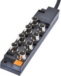 Okablowanie czujników i aktorów jest znacznie wygodniejsze dzięki naszej skrzynce dystrybucyjnej. Poszczególne urządzenia są połączone z rozdzielaczem za pomocą kabla M8 lub M12, który jest wstępnie zmontowany po obu stronach. Dzięki temu można znacznie zmniejszyć nakłady na układanie i podłączanie kabli. Wyświetlacz trybu pracy dostarcza informacji o trybie pracy czujnika (napięcie robocze, stan przełączenia). Dzięki temu rozwiązywanie problemów jest łatwiejsze, ponieważ bezpośrednio podawany jest przegląd działania podłączonych urządzeń peryferyjnych.