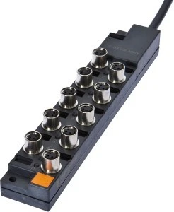 Okablowanie czujników i aktorów jest znacznie wygodniejsze dzięki naszej skrzynce dystrybucyjnej. Poszczególne urządzenia są połączone z rozdzielaczem za pomocą kabla M8 lub M12, który jest wstępnie zmontowany po obu stronach. Dzięki temu można znacznie zmniejszyć nakłady na układanie i podłączanie kabli. Wyświetlacz trybu pracy dostarcza informacji o trybie pracy czujnika (napięcie robocze, stan przełączenia). Dzięki temu rozwiązywanie problemów jest łatwiejsze, ponieważ bezpośrednio podawany jest przegląd działania podłączonych urządzeń peryferyjnych.