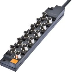 Okablowanie czujników i aktorów jest znacznie wygodniejsze dzięki naszej skrzynce dystrybucyjnej. Poszczególne urządzenia są połączone z rozdzielaczem za pomocą kabla M8 lub M12, który jest wstępnie zmontowany po obu stronach. Dzięki temu można znacznie zmniejszyć nakłady na układanie i podłączanie kabli. Wyświetlacz trybu pracy dostarcza informacji o trybie pracy czujnika (napięcie robocze, stan przełączenia). Dzięki temu rozwiązywanie problemów jest łatwiejsze, ponieważ bezpośrednio podawany jest przegląd działania podłączonych urządzeń peryferyjnych.