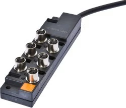 Okablowanie czujników i aktorów jest znacznie wygodniejsze dzięki naszej skrzynce dystrybucyjnej. Poszczególne urządzenia są połączone z rozdzielaczem za pomocą kabla M8 lub M12, który jest wstępnie zmontowany po obu stronach. Dzięki temu można znacznie zmniejszyć nakłady na układanie i podłączanie kabli. Wyświetlacz trybu pracy dostarcza informacji o trybie pracy czujnika (napięcie robocze, stan przełączenia). Dzięki temu rozwiązywanie problemów jest łatwiejsze, ponieważ bezpośrednio podawany jest przegląd działania podłączonych urządzeń peryferyjnych.