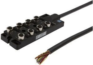 Okablowanie czujników i aktorów jest znacznie wygodniejsze dzięki naszej skrzynce rozdzielczej czujników. Poszczególne urządzenia są połączone z rozdzielaczem za pomocą kabla M8 lub M12, który jest wstępnie zmontowany z obu stron. Dzięki linii magistralnej można znacznie zmniejszyć wysiłek związany z układaniem i okablowaniem kabli. Wyświetlacz trybu pracy informuje o trybie pracy czujników (napięcie robocze, stan przełączenia). W ten sposób rozwiązywanie problemów jest prostsze, ponieważ bezpośrednio daje przegląd funkcjonowania podłączonych urządzeń peryferyjnych.
