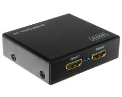 Rozdzielacz bsługuje rozdzielczości 4K, rozdziela sygnał na dwa odbiorniki (telewizory) bez straty jakości.