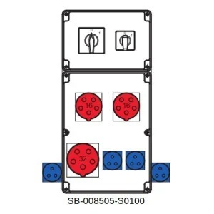 Rozdzielnica 0‑1(32A) 0‑1(16A) 1x5x32A 2x5x16A 4x3x16A INA=32A SB‑008505‑S0100‑54
