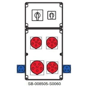 Rozdzielnica 0‑1(32A) 0‑1(16A) 1x5x32A 3x5x16A 2x3x16A INA=32A SB‑008505‑S0060‑54