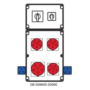 Rozdzielnica 0‑1(32A) 0‑1(16A) 1x5x32A 3x5x16A 2x3x16A INA=32A SB‑008605‑S0060‑54