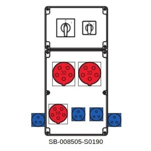Rozdzielnica 0‑1(32A) 0‑1(16A) 2x5x32A 1x5x16A 4x3x16A INA=32A SB‑008505‑S0190‑54