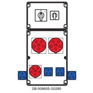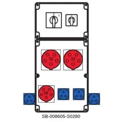 Rozdzielnica 0‑1(32A) 0‑1(16A) 2x5x32A 1x5x16A 4x3x16A INA=32A SB‑008605‑S0280‑54