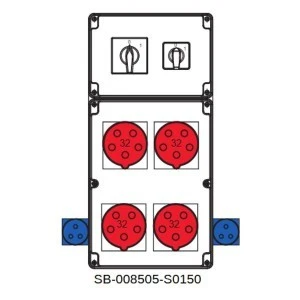 Rozdzielnica 0‑1(32A) 0‑1(16A) 4x5x32A 2x3x16A INA=32A IP54 SB‑008505‑S0150‑54