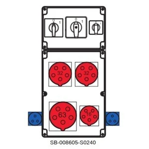 Rozdzielnica 0‑1(63A) 0‑1(32A) 0‑1(16A) 1x5x63A 2x5x32A 1x5x16 SB‑008605‑S0240‑54