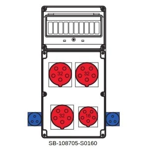 Rozdzielnica 0-1(32A) 0-1(16A) 2x5x32A 1x5x16A 1x3x16A INA=32A SB-008605-S0160-54