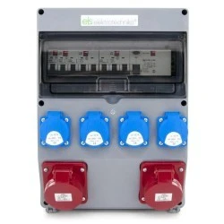 - 2 x gniazdo skośne 16A 5P 400V IP44, w pełni okablowane i zabezpieczone 2* B16 3P,