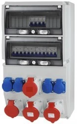- 2x gniazdo 32A 5P 400V podpięte pod dwa bezpiecznik C32A 3P,