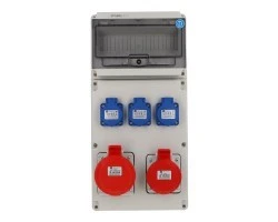 - Konfiguracja gniazd: 1×5P/32A, 1×5P/16A, 3×(2P+Z)/16A